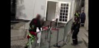 co za debil z kamera. najpierw sam zaczepia straz a potem placze i na policje dzwoni jakby policja nie miala nic ciekawszego do roboty niz przyjezdzac po debila ktory prowokuje a potem placze.