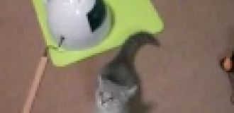 Mądry kot pryzmujący mleko.