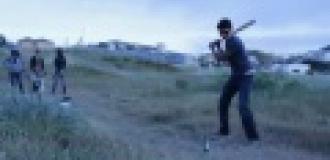 Koleś śmigajac na rolkach zagrywa Mozarta . co sie nie robi z nudów ; )