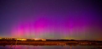 Zorza polarna. Okolice Krosina koło Świdwina w województwie zachodniopomorskim.
