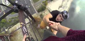 Ludzie którzy siedzą na dachu i stracili wszystko biją brawo po uratowaniu kota.